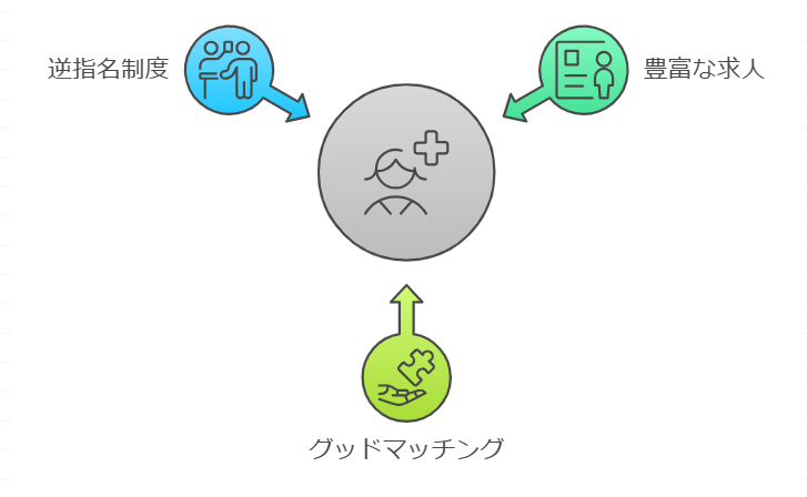 そうですね。でも、お仕事ラボはグッドマッチング機能があるので、利用者の希望条件やキャリアに基づいて転職先を提案してくれます。