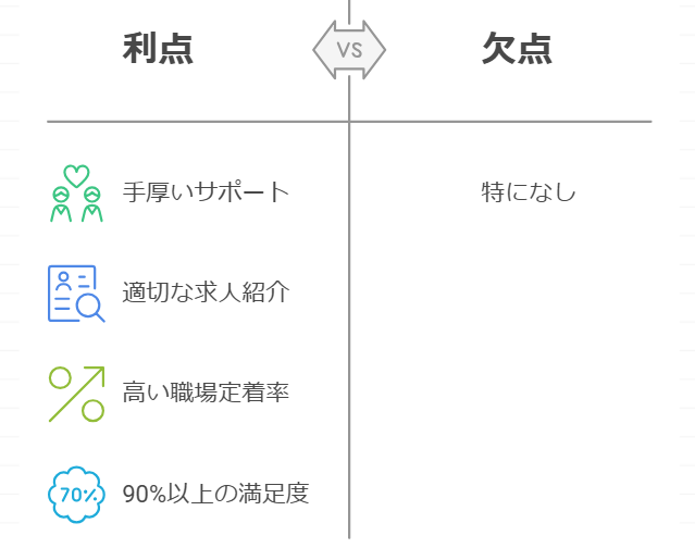 利用者からは、お仕事ラボのサポートが手厚いと好評です。ヒアリングを通じて適切な求人を紹介してもらえるという意見が多いですね。また、職場定着率も高く、利用者満足度は90%以上です。