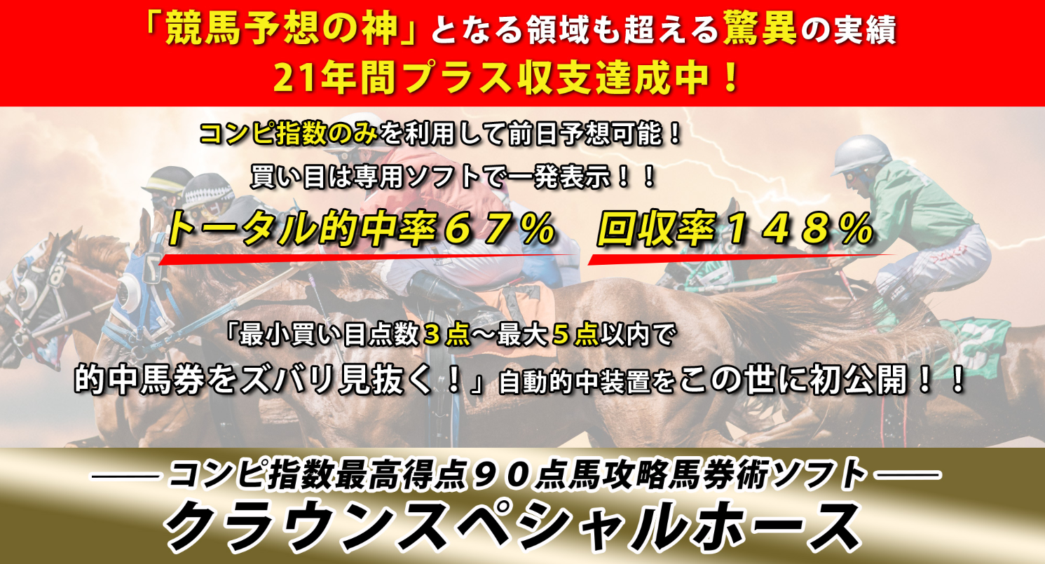 「的中馬券をズバリ見抜く!コンピ指数最高得点90点馬攻略馬券術ソフト!」 クラウンスペシャルホース