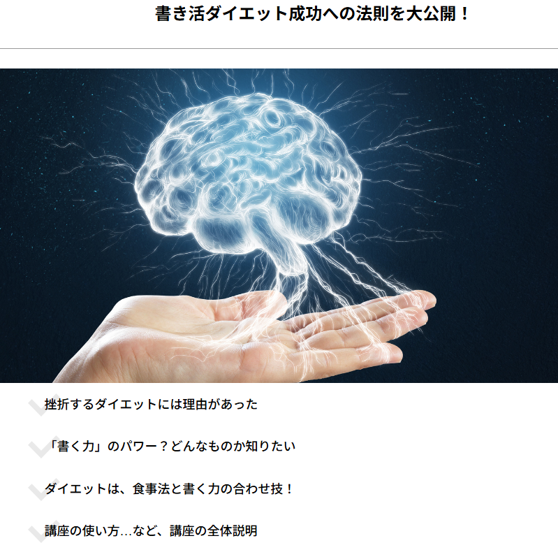 書き活ダイエット講座は、これまでのダイエットの概念を覆し、あなたの「無意識の思考」と「行動」を変えることで、長期的に健康的な体を手に入れるサポートをします!
